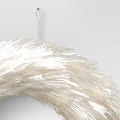Enhance your winter decorations with this 17-Inch Shimmering Tinsel Christmas Decorative Wreath from Wondershop™. This circular wreath features a shimmering white tinsel construction to add a cozy touch of texture and sheen to your display. Designed with a top loop for instant hanging, the artificial wreath is suitable for door or wall placement anywhere in your indoor space.